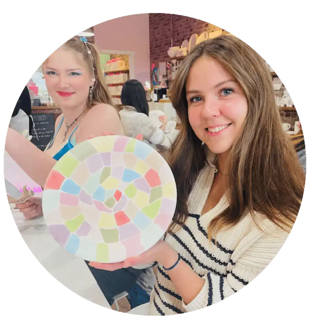 Guests choose their pottery piece, paint together, and leave the rest to us. Once finished, the pieces return to our studio where they are professionally glazed and kiln fired.